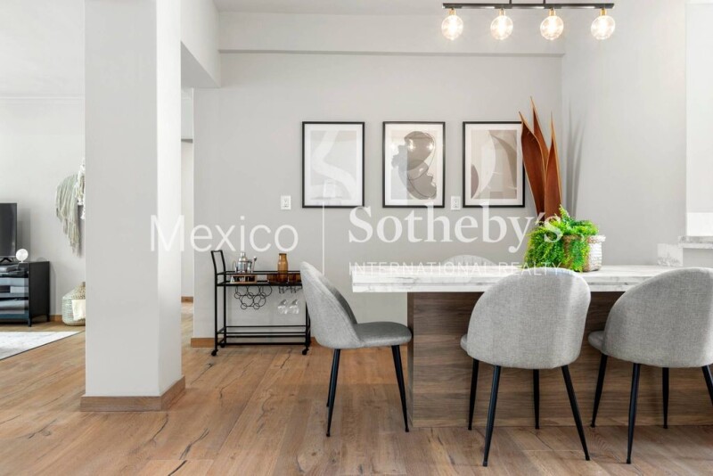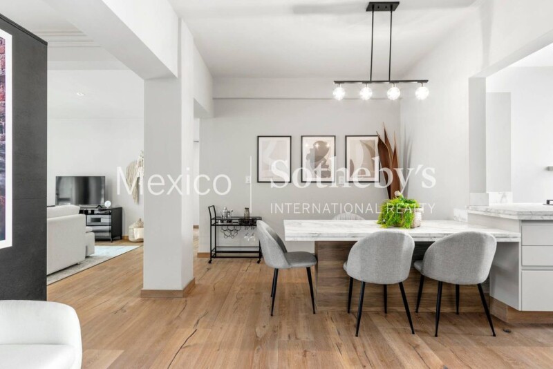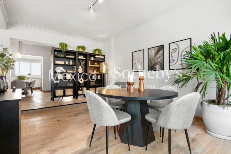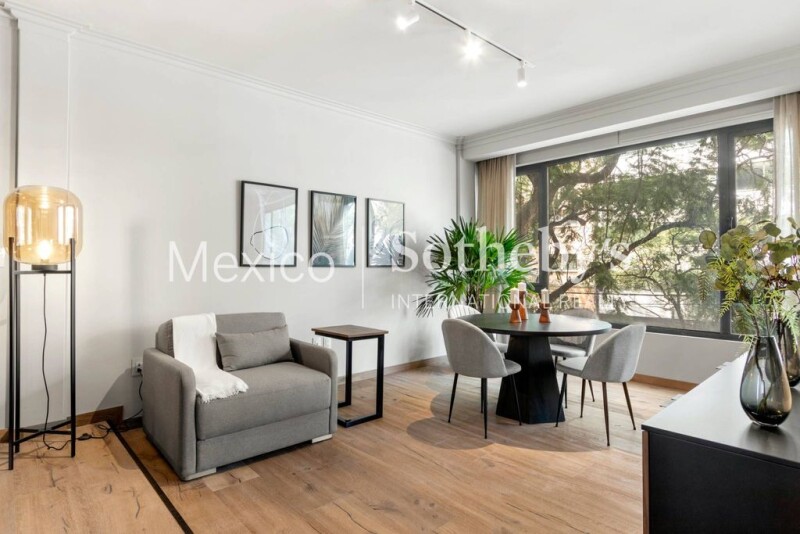 A few steps from a corner of Lincoln Park in Polanco, we find this beautiful apartment with impeccable taste in an iconic Art Deco building with views of large trees. We open the door and find a hall that leads us to the living room and dining room with very good spaces and lighting. The kitchen on the right side is open with lots of light and a dining room that integrates it giving an amplitude to the entire apartment. A hallway leads to the very good sized master bedroom with closet and full bathroom with tub and the second bedroom with tree views has a full bathroom outside, each with beautiful marble countertops, very elegant. It has a utility room or staff quarters and a parking place. Polanco is home to cultural venues such as museums and galleries, parks, embassies, and entertainment businesses such as restaurants, cafes, bookstores, luxury stores and shopping centers.