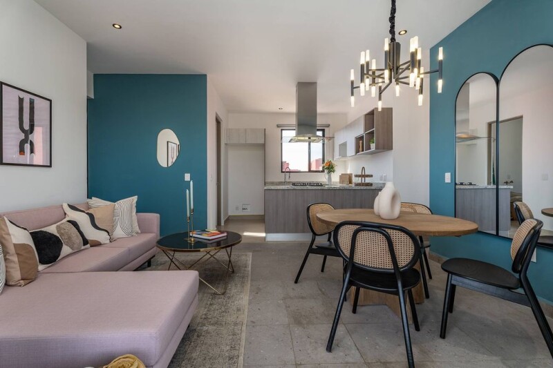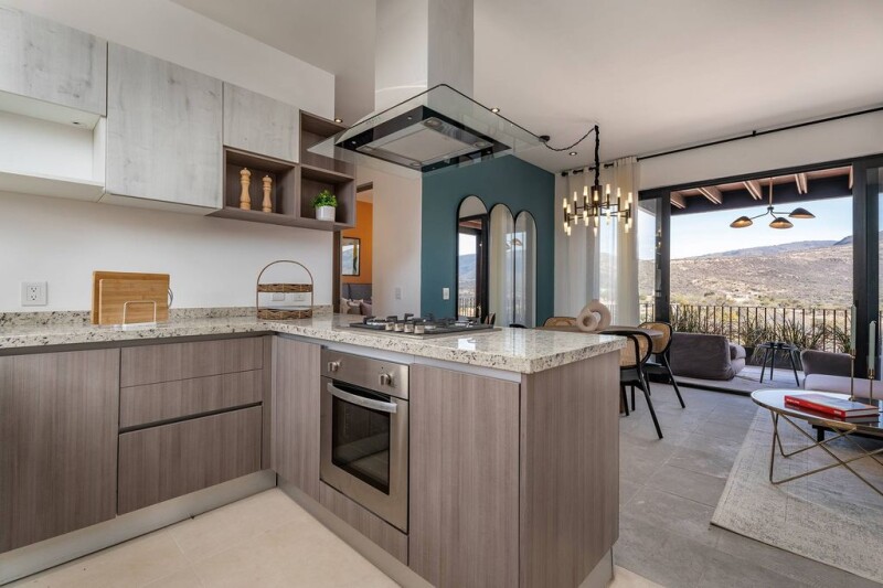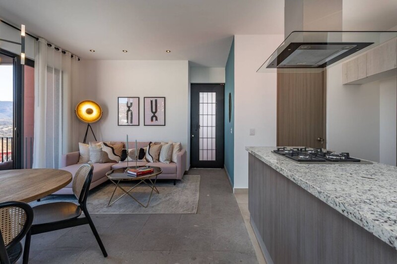FULLY FURNISHED BEAUTIFUL DECORATED!! Contemporary Penthouse Condo Oratorio 309, 2 Bed, 2.5 Bathrooms, granite countertops, walking closet on the master with double sink. Kitchen with granite countertop, living dining next to a covered terrace, private roof top covered terrace with grill and half bath , amaizing views to Los Picachos mountains and sunsets . Plenty of natural light through out the apartment. These condo comes completly FURNISHED (friedge is not included), beautiful decorated!!!! just 15 min walk to supermarkets such as City Market, Mega Comercial, restaurants, services, Malanquín Golf Club, Sports Center, Gym, etc. And only 15 min by car to the Parish. The condominium has 2 Rec. 2 full bathrooms, large covered terrace of 17.31m2. It has an excellent location within the complex, it has a lot of privacy, full of natural light throughout the apartment, beautiful views of the free Los Picachos mountains, which can never be blocked, it has no neighbors in front or behind. Contemporary style, with an open distribution in the dining room, kitchen and terrace, from where you can enjoy the beautiful views of the sunrise and the mountains. It has high ceilings, granite countertops, in kitchen and bathrooms, quarry floors. Incredible common areas, each closter has a pool, jacuzzi, terrace, 1/2 bathroom. The clubhouse (under construction) has: 2 PADDLE COURTS, TENNIS COURT, HEATED POOL, JACUZZI, WATER ROOM, SPACE FOR MASSAGES, BATHROOMS AND STEAM FOR MEN AND WOMEN, LOCKERS, MULTIPURPOSE ROOM, GYM, TERRACE BAR WITH KITCHEN. It has 24 hour security. with controlled access. The entire complex has reflecting pools around the development and garden areas, ideal for going for walks and enjoying the surroundings. The maintenance of this condominium is $1,766 MXN monthly payments.
