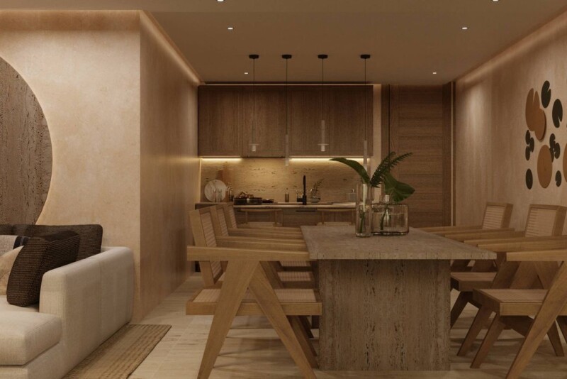 Discover an exceptional project in the heart of Tulum, surrounded by lush jungle in the magical holistic zone and located very close to the most iconic destinations of the Riviera Maya. The complex features a wide range of luxury amenities, offering a comfortable and enjoyable lifestyle. With 60% of the area dedicated to magnificent pools and green spaces, you will enjoy a unique connection with nature. This luxury penthouse of 1,261 sq ft (117.15 m²) is located on the third floor and includes three bedrooms, two bathrooms, a spacious kitchen, a balcony with a private pool, and lovely views of the main pool and the surroundings. It comes fully equipped with high-quality appliances and furniture. The master bedroom comes with an ensuite bathroom, providing additional comfort and great potential for attractive rentals. Among the amenities, the complex offers: a pool, pool bar, lap pool, jacuzzi, event hall, cinema, coworking space, gym, climbing wall, meditation area, outdoor sports zone, hammock area, presentation room, restaurant, sports bar, underground parking, laundry facilities, and elevators. This residential development presents a unique opportunity that combines an excellent quality of life with a secure investment model. Additionally, you will have an income guarantee when you are not using the property. OCEAN TULUM is located just 820.21 feet (250 meters) from Holistika, a magical recreational center in the jungle, architecturally designed for those seeking an alternative lifestyle. Here you´ll be able to enjoy yoga studios, outdoor practice areas, an art studio, retreat spaces, a vegetarian restaurant, a fruit bar, and a temazcal. Daily classes open to the public attract tourists and residents interested in wellness and personal growth, making this area highly appealing to savvy investors. HOA Fee: 3 USD/M2/Month.