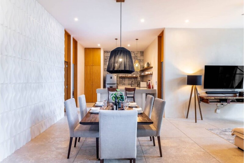Manor Tulum is a beautiful development immersed in the jungle, it is a destination that provides connection with nature. The design merges with the jungle environment, including tropical plants, natural materials, spaces that generate a magical and calm atmosphere. Located within Aldea Zamá, one of the areas with the greatest added value and prestige in Tulum, spectacular amenities: 2 swimming pools, table area for coexistence, a reading or work space, relaxation areas. It is located just 10 minutes from the Caribbean Sea. Luxury, design and comfort, apartment located on the 2nd floor. The spacious apartment offers spaciousness with luxury finishes, high ceilings, wall coverings; quartz countertops in kitchen and bathrooms; balcony with spectacular views of nature; Floor-to-ceiling windows that provide excellent lighting and natural ventilation. Apartment of 138.03 m2 / 1485.74 sq.ft. of construction; fully furnished and equipped. It has 3 large bedrooms; the main one with a full bathroom and closet; 2 bedrooms with closet, a second shared full bathroom, large living room and dining room, floor-to-ceiling windows that open onto a balcony with direct views of nature. Modern fully equipped kitchen, with quartz countertop, stainless steel appliances. This property has an apartment next door that is also for sale, the design is a mirror, the two apartments are perfect for groups and large families; For vacation rentals it is a great differentiator in the area because in this way 6 bedrooms and 4 full bathrooms could be offered, this being a great attraction for vacation rentals. You will enjoy the spectacular amenities: an outdoor pool and a space to relax, a second indoor pool next to a library, in addition to the extraordinary vegetation that is in all the hallways and amenities of the complex.
