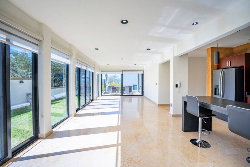 Casa Golden is a new and cozy family residence with large spaces and abundant natural light in a private gated community “Los Patios”. With a contemporary style and its fine marble and granite finishes on floors, walls and bathrooms, kitchen with black granite and the spectacular view of the terrace are just some of the outstanding features of this property. The lobby is a space that generates an elegant expectation and increases the surprise that is generated when entering the social areas with floor-to-ceiling sliding windows that allow natural light to enter and observe the green garden that surrounds the entire house. Sliding doors surround the large living room that connects with the dining area and the kitchen with its breakfast bar to keep the garden open or closed at your convenience. On the first level there is a bedroom with a full bathroom with sliding doors that give access to a garden area. In addition, a large laundry area, bedroom and parking for 2 vehicles. The second level receives a hallway that separates a bedroom from the family room, office space and another guest bedroom with large closets, full bathrooms each and impressive panoramic views of the mountains. Finally, there is access to the sensational terrace with the most breathtaking views of the mountains accompanied by the most beautiful sunsets. This area has a grill, minibar and TV, you couldn't ask for more to spend a pleasant moment. The condominium amenities allow you to enjoy: 24/7 security, cobblestone street and underground wiring, social area and gym. In addition, with an excellent location just minutes from the best and most convenient places such as City Market, the Malanquin Golf Club, Banks, Hospital, among other shops and entertainment venues. The price of the house is $10,950,000 Mexican pesos and it may vary in USD due to the exchange rate.