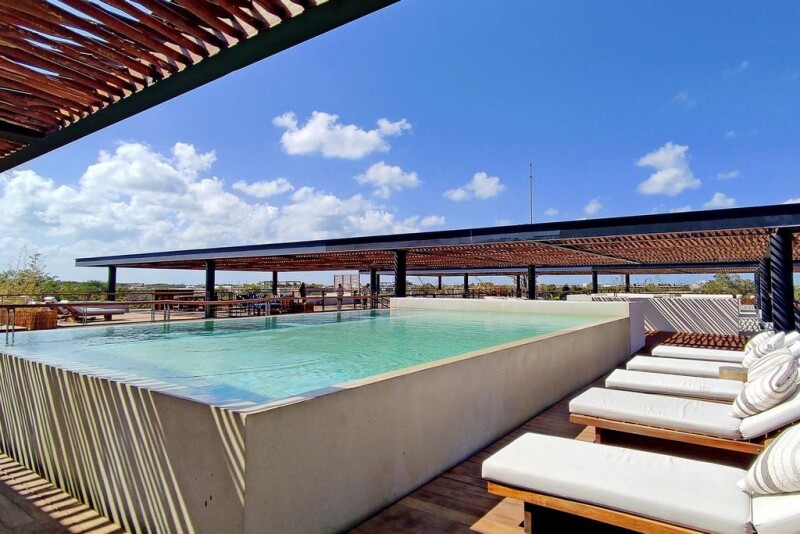 Welcome to this elegant and spacious apartment with 4 bedrooms and 4 bathrooms, designed to offer maximum comfort and style. With a private pool that invites you to enjoy the warm Caribbean sun, this home is ideal for families and groups looking to create unforgettable moments. The master bedroom features stunning views of the terrace and the private pool. Enjoy the exclusivity of a large walk-in closet and an en-suite bathroom that ensures privacy and comfort. The other three bedrooms, along with a fourth bedroom with two single beds, provide ample space for everyone. Relax in the huge and bright living room, adorned with large windows that fill the space with natural light. With a dinning table that seats eight, it's perfect for family dinners. The kitchen, fully equipped with a stove and electric oven, along with a washer and dryer, adds convenience to your stay. The building’s rooftop offers spectacular common areas, which include an impressive pool, two jacuzzis, six hammocks, and sun loungers, allowing you to enjoy moments of relaxation and fun with unforgettable views. It is an excellent location with quick access to the avenue and great views. With 4 spacious bedrooms and a very large common area, this apartment is unique in Amelia. The private pool can be used even if it’s raining, as it is covered. The design of the development was done by Sordo Madaleno, a prestigious name that has won several international architecture awards Don’t miss the opportunity to experience life in Tulum. HOA Fee $9,168 pesos/month Property tax $24,000 pesos/year.