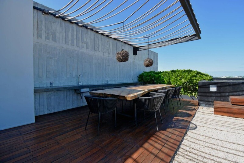 Beautiful 2-bedroom lock-off apartment, a gem of modern design and seamless integration with nature, ideal for those seeking flexibility and style in the heart of Tulum. Designed to maximize functionality, the layout allows the bedrooms to be separated into independent units, perfect for renting out and providing privacy for guests. It combines high-quality finishes with an architectural design that takes full advantage of natural light and the delightful jungle breeze. The spacious living area features large windows that open to a beautiful private balcony with a refreshing plunge pool, perfect for relaxing and enjoying the lush surroundings. The kitchen is modern and fully equipped, crafted with materials that reflect the natural essence of the region. The master bedroom boasts an ensuite bathroom and stunning views, while the lock-off bedroom offers a separate entrance, a full bathroom, space for a small living area, and its own closet. This thoughtful design provides the opportunity to live comfortably while generating passive income. Located in the exclusive IIK development, this apartment is surrounded by top-tier amenities, including a swimming pool, gym, steam and sauna rooms, and common areas that perfectly harmonize with Tulum’s vibrant energy. The total area is 1,031.94 SF (95.87 m2), with 886.30 SF (82.34 m2) indoors and 145.64 SF (13.53 m2) of balconies.