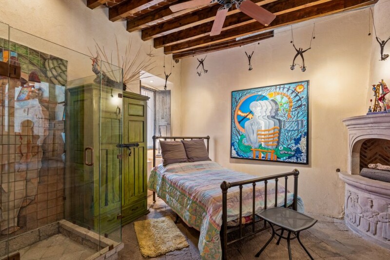 La Casa Bohemia is a free-spirited, artistically inspired colonial gem in the heart of San Miguel de Allende’s historic district. Just a five-minute stroll from the world-famous Jardín and Parroquia, this exceptional home places you at the center of everything Mexico’s crown jewel has to offer. Often called The Paris of the West, San Miguel is a city of exquisite secrets hidden behind every door—and La Casa Bohemia embodies that spirit in every way. Meticulously reimagined by its artist-owner, the home blends colonial charm with contemporary elegance. Magnificent cantera carved stone fireplaces, handcrafted ironwork, and a stunning artisan fountain flanking the dual staircase, creates an ambiance of timeless beauty. Open-concept living areas flow seamlessly into a contemporary kitchen with professional grill, while a flexible dining room (or additional bedroom) and a cozy ground-floor suite provide versatility and comfort. Ascending to the upper level, you’ll find a spacious master suite including a luxurious double bath with a copper freestanding tub and a carved marble basin. An inviting sunlit sitting area is ideal for an artists studio. But the true showstopper is the expansive rooftop terrace—offering breathtaking sunset views to the west and a front-row seat to Las Monjas, San Miguel’s most enchanting illuminated dome. It’s the perfect setting for cocktails and rooftop entertaining, capturing the magic of the city’s skyline. A rare find in San Miguel, La Casa Bohemia is more than a home—it’s an experience. This one-of-a-kind residence is an extraordinary opportunity to own a piece of the city’s artistic soul.