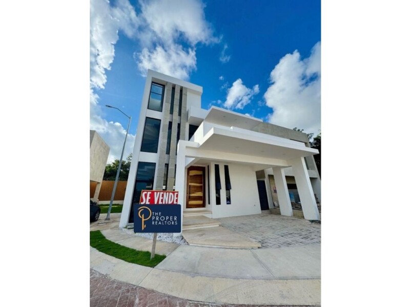 Luxury House for Sale – Corner, 3 Levels, with Pool – Río Residencial, Cancún Discover the perfect combination of design, spaciousness, and comfort in this impressive brand new 3-level corner house, located very close to Av. Huayacan, one of the residential areas with the highest added value in Cancún. With 320 m² of construction on a 190 m² lot, this property stands out for its bright spaces, high ceilings of 3.1 m, and top-quality finishes. Property Features: Ground Floor: 2 covered parking spaces. Elegant entrance hall with tzalam wood door. Study/Office or 4th bedroom with direct access to a full bathroom. Full bathroom, accessible from the living room or study. Storage room with interior and exterior access for greater comfort. Large living room with 3-panel sliding window and indirect LED lighting. Integrated kitchen with center island, modern design with false ceiling detail. Spacious dining room with a double-pane sliding window with direct access to the patio. Private patio with: Covered terrace. Pool with comfortable stairs, seating with hydromassage and a waterfall. Independent walls and a side service hallway for greater privacy. First Level: Master bedroom with private terrace, large bathroom, and dressing room. 2 secondary bedrooms, each with a full bathroom and closet area (one with its own terrace). Space for a linen closet. Second Level: Laundry area with natural ventilation. Full bathroom. Large terrace with laundry room, ideal for gatherings overlooking the residential area. Luxury Finishes: Planters surrounding the facade and internal area of the living room. Matte black windows with mosquito nets. Rain showers in all bathrooms. Residential Amenities: Clubhouse with gym. Semi-Olympic pool with lap lanes. Sports courts for paddle tennis, volleyball, and basketball. Playground for the little ones. Artificial lake with kayaks, a unique touch to enjoy nature. Controlled access and 24/7 security with closed-circuit surveillance. Titled and free of liens, this property offers a unique experience of luxury, privacy, and security in a strategic location with quick access to schools, shopping malls, and Cancún's main thoroughfares. Schedule your visit today and discover your new home in Cancún's best residential area.