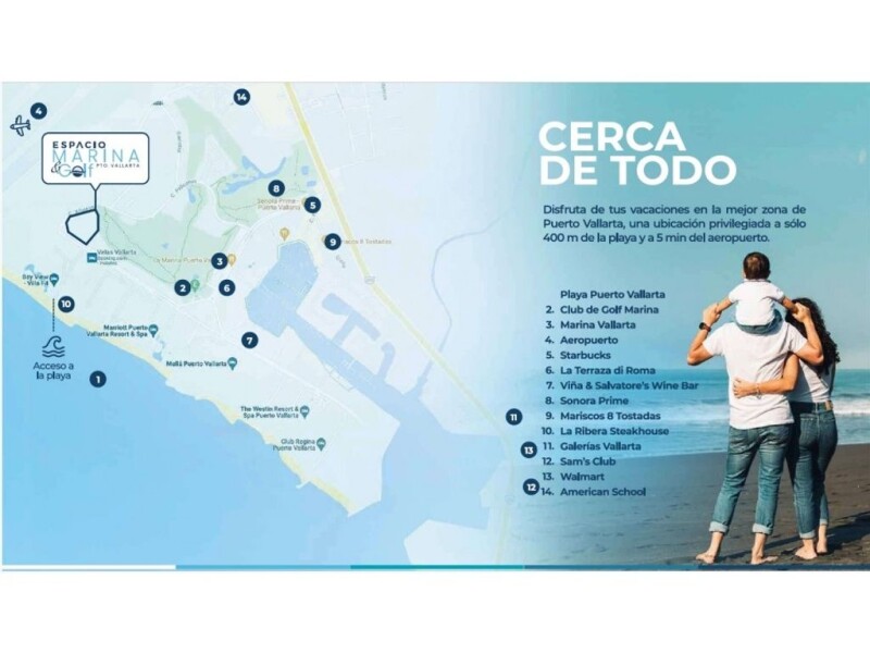 Av Paseo de la Marina Nte 620, Marina Vallarta, 48354 Puerto Vallarta, Jal. Golf Course View Espacio Marina & Golf an ideal development to relax, get out of the city and enjoy special moments with your family on the beautiful beaches of Puerto Vallarta. The capital gain in Puerto Vallarta is increasing, so you can also rent your apartment on platforms for short and medium stays, it is an excellent investment! Features from: Interior: 72.22 m2 Terrace: 14.68 m2 Parking: 1 Storage: 3.24 m2 Total m2: 90.14 m2 Close to everything: enjoy your vacation in the best area of Puerto Vallarta, a privileged location just 400 m from the beach and 5 minutes from the airport. · Puerto Vallarta Beach · Marina Golf Club · Marina Vallarta · Airport · Starbucks · La terraza Di Roma · Viña & Salvatore´s Wine Bar · Sonora Prime · Mariscos 8 tostadas · La ribera Steakhouse · Galerías Vallarta · Sam´s Club · Walmart · American School Invest in a unique development with a first-class architectural design and finishes, in the heart of Puerto Vallarta: · Tower A of 96 units · Tower B of 114 units · Ocean view · Golf course view · Internal park · Large green areas · 11 amenities in more than 6,900 m2 Development features: · Centralized CCTV security system with alarm system, detection and monitoring 24/7 · Emergency plant · Fire detector in each apartment · Access control in elevators · Ventilated evacuation stairs · 100% electric · Solid walls · Drinking water pumping backed up by emergency plant · 2 elevators per tower · 2 levels of spacious apartments Outdoor Amenities: · Recreational pool · Pet park · Firepit · Sports pool · Children's games · Grills · Jacuzzi · Indoor park · Sundeck area Indoor Amenities: · Gym · Minishop · Kids Club In association with Monica Realtor IMPORTANT Please check availability Prices subject to change without notice. The images shown may vary from the original product. Published price does not include the costs of signing the deed. Intermediation Adhesion Contract for the sale of real estate, registered with PROFECO, Number 4149-2022 dated August 30, 2022. We invite you to see our privacy notice located on our page. I'll take you to meet her, I await your call.