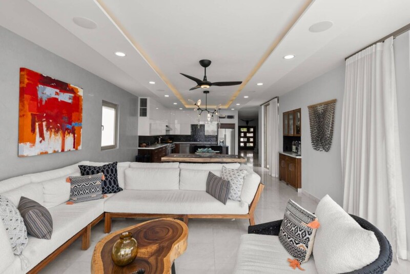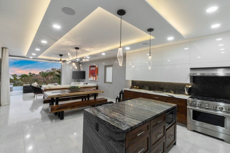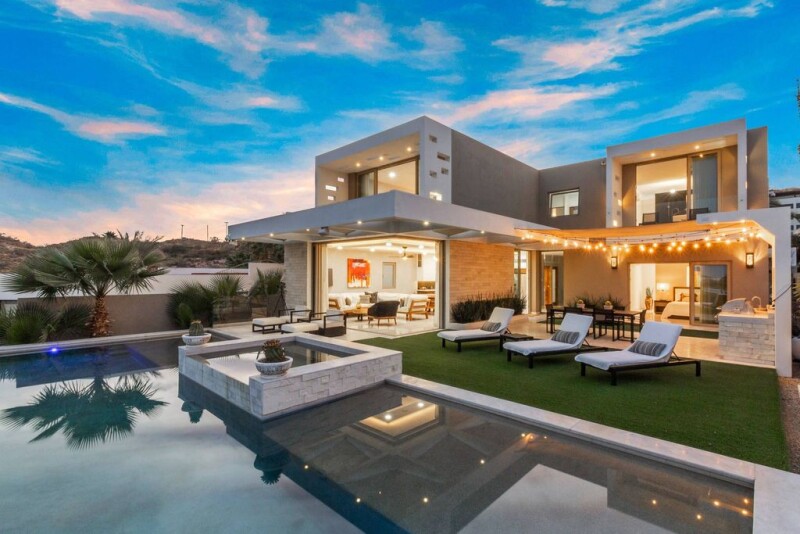 Discover modern luxury in this exquisitely designed home, built in 2020 and nestled within the exclusive, beachfront, private gated community of Cabo Colorado in San José del Cabo—just 2 miles from Palmilla Beach. Enjoy the convenience of living just steps from a stunning, sandy beach within the community. With a striking contemporary aesthetic, this residence features gleaming white marble floors, beautifully appointed marble bathrooms, and captivating ocean views throughout—three of the four bedrooms enjoy these inspiring vistas. The first floor is an entertainer's dream. Its open-concept design seamlessly integrates a gourmet kitchen, dining area, and living room that flows effortlessly into an outdoor paradise. Step outside to your private oasis, complete with a large pool, spa, and a fully equipped outdoor kitchen, perfect for dining and entertaining. Gather around the fire pit to create unforgettable moments under the stars. This level also features a full guest bedroom and bath, a half bath, and an attached one-car garage for convenience and security. Upstairs, three luxurious en-suite bedrooms provide privacy and relaxation, with two featuring private terraces furnished with lounge seating perfect for enjoying the gentle sea breeze and ocean views. The second floor also includes a versatile laundry room that doubles as an office, designed to keep your lifestyle practical and elegant. As night falls, the home transforms with thoughtfully designed lighting that highlights the home and the stunning desert landscape, creating a warm and inviting ambiance throughout the property. Experience the perfect blend of contemporary sophistication, comfort, and coastal living in this exceptional Cabo Colorado home.