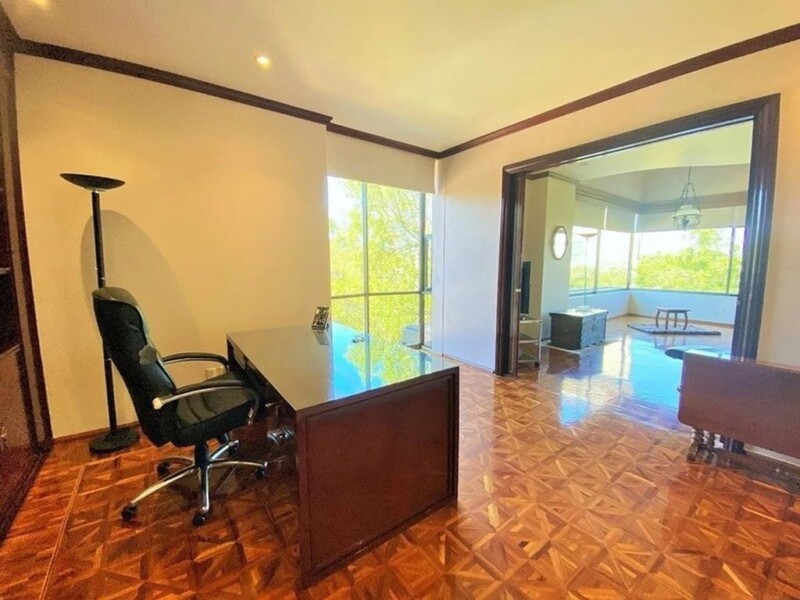 Welcome to one of the most exclusive guard gated communities in Mexico City! This large half floor unit features direct keyed elevator access, 3 beds 3.5 baths, an office, a family room, TV room, large living room open to formal dining room, a dining room off the kitchen, pantry, laundry room, staff quarters with another bedroom and bathroom, has undergone remodeling in key areas and has been impeccably maintained. Unit comes with 3 covered, assigned parking spaces and a large storage room. Amenities of the compound include tennis courts, swimming pool, concierge, gym, garden and jogging path, kids garden, squash court, 24/7 armed security, and more! Centrally located in one of Mexico City's most prestigious residential avenues, restaurants, shopping centers, schools, hospitals, and more are within close proximity.