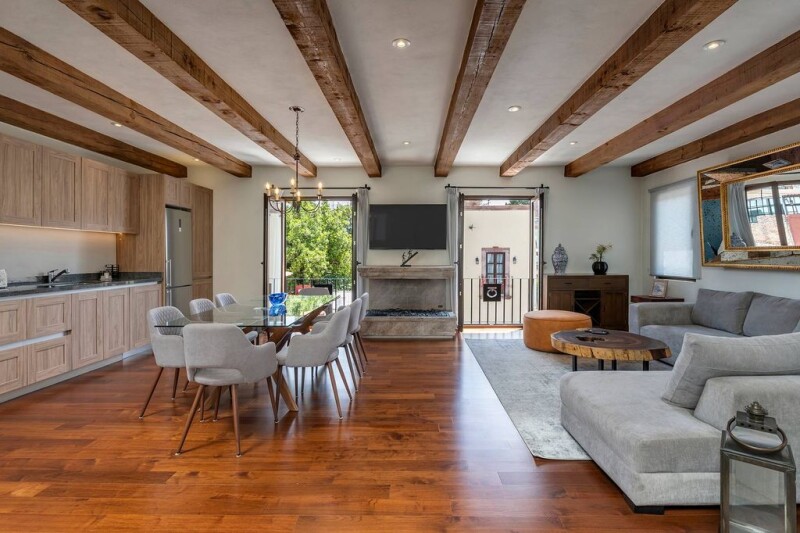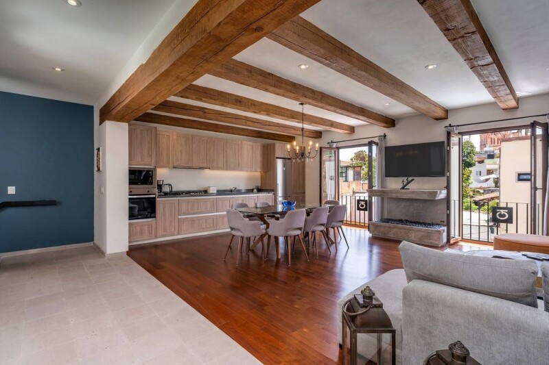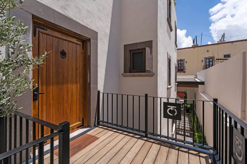Quinta Tanneries Grand Residence This luxurious condominium is located steps from the most iconic locales of San Miguel de Allende; the Jardin (La Parroquia) and the Rosewood Hotel. Imagine walking through the beautiful colorful streets of San Miguel, a UNESCO World Heritage city, and enjoying all that this unique, sophisticated city offers. Quinta Tenerias features all five elements of Feng Shui such as wood and stone floors to interconnect outdoor spaces with interior areas, water fountains to promote positive energy, fireplaces to represent the fire element for success, and metal elements associated with the qualities of pleasure and creativity. Luxe Residence is a new condominium complex of five luxurious apartments that offers the best location in San Miguel de Allende. This two levels condominium, 2 bedroom, 2 and a half bathroom, fully furnished elegant residence of 2,615 sq. ft. fully equipped kitchen and an outdoor private terrace overlooking interior gardens, among other luxury features. The master bathroom includes paired sinks, a clear tempered glass shower enclosure, and a travertine fiorito marble floor. The condominium is being sold “Turnkey” fully equipped with furniture, linens, and kitchen accessories. The building offers an elevator, large patios, gardens, and a large roof terrace to enjoy the almost perfect climate of San Miguel. The roof terrace is expansive and includes a lounge area, a solarium, a grill, and a hot tub. Every aspect is intended to create comfort, safety, and harmony throughout the property.