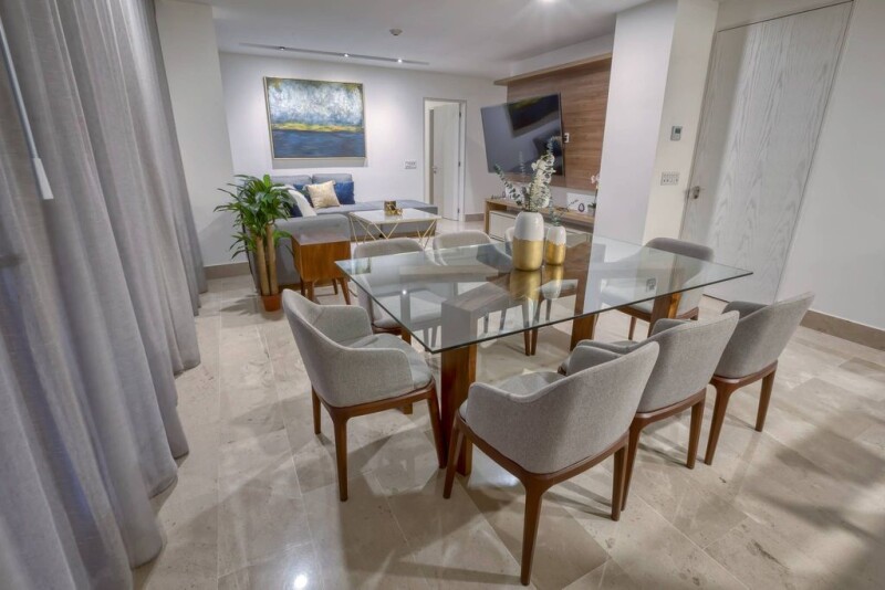 PRICE IN MEXICAN PESOS: $22.550.000,00 SUBJECT TO THE EXCHANGE RATE FIX THE DAY APARTMENT: Interior surface: 139 m Terrace area: 78 m Total area: 217 m 3 bedrooms 3 full bathrooms Guest bathroom Living / Dining Room 4 terraces AMENITIES: Beach access Lobby and reception for owners and their guests Pool with bar, sundeck and lounge chair Children's play area Gym Preferential use of the restaurant and spa inside the commercial premises 24-hour comprehensive security Property management service with attractive rental and maintenance programs Characteristics Outside • Access to the beach • Balcony • Covered parking • Easy parking • Beachfront • Terrace General • Accessibility for Older Adults • Air conditioning • Furnished • Wine cellar • Equipped kitchen • Lift • 24 hour security Recreation • Swimming pool • Children's play area • Gymnasium • Jacuzzi • Multipurpose room.