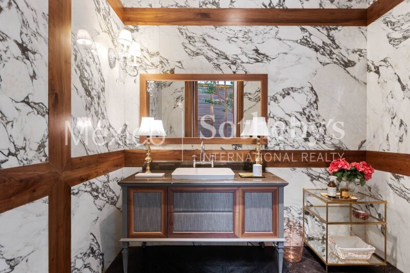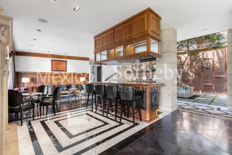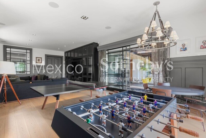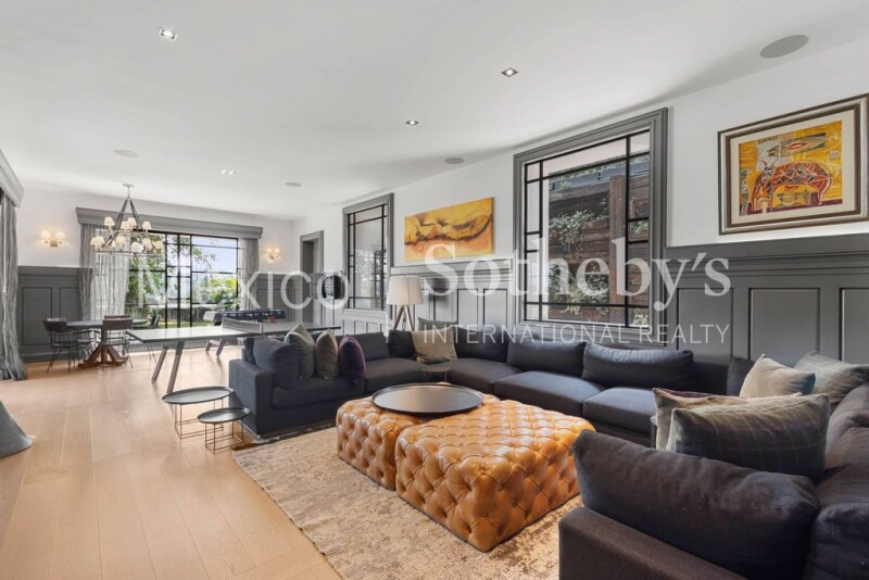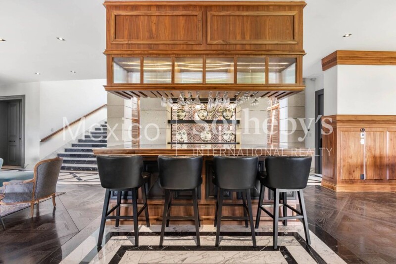 This luxurious home in Bosques de Olivos, designed by architect Artigas, features a panoramic view of Bosques de las Lomas and a majestic tree at its center, which serves as the heart of the home. The property has three bedrooms, with the option for a fourth, all equipped with air conditioning. It also includes standout spaces such as a modern, spacious kitchen, a cozy library, and a beauty area with a steam room. Additionally, the house boasts a private gym with a full bathroom, a lap pool with a propulsion system, and solar panels for heating the pool lane. It also features a home theater and a wine cellar. The entire house is controlled by the LUTRON system, has hydraulic heating, and is powered by a backup generator. Outside, a beautiful fountain and a charming treehouse for children complete the garden, while electric fencing, an alarm system, and surveillance monitoring ensure maximum security.