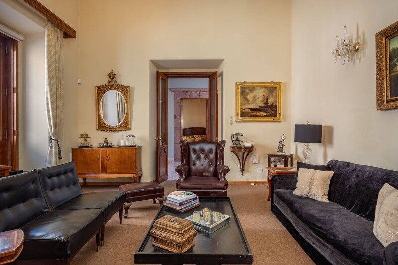 Corner Iconic home at the heart of San Miguel de Allende This iconic home is located in the center of San Miguel de Allende’s historic center, just steps from the Parroquia cathedral and surrounded by the best restaurants, bars, and art galleries. The home was owned by noted businesswoman and philanthropist, Carmen Beckmann Macías who with her husband acquired the property in the 1930s and created a center of arts, music, and community involvement. Ms. Beckmann was a business entrepreneur, who created a thriving jewelry design and manufacturing business located in a portion of the property. Additionally, she was a sophisticated real estate investor, acquiring multiple homes in San Miguel de Allende. Upon her death, several of her properties were bequeathed to the Universidad de Guanajuato. Now available for purchase, this property is a rare opportunity to acquire a historic home that has been largely left untouched and retains its period detail and opulence. The home features a spacious entry patio, that provides light and privacy to the multiple bedrooms, library, living room, dining room, and large kitchen. The additional structure that was part of the jewelry factory has been repurposed with several bedrooms and terraces. The crown jewel is the largely undeveloped rooftop terrace that offers tremendous potential. This spacious historic corner property is well suited as an elegant home, a boutique hotel, or restaurant with rooftop dining.