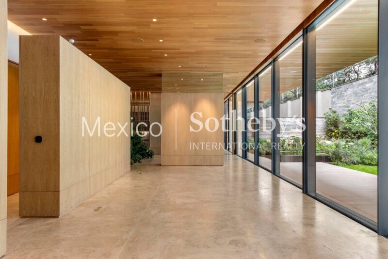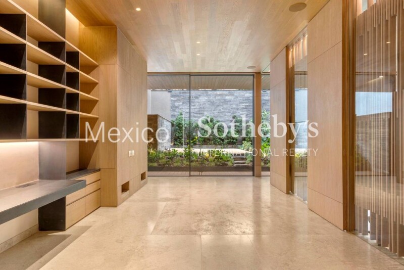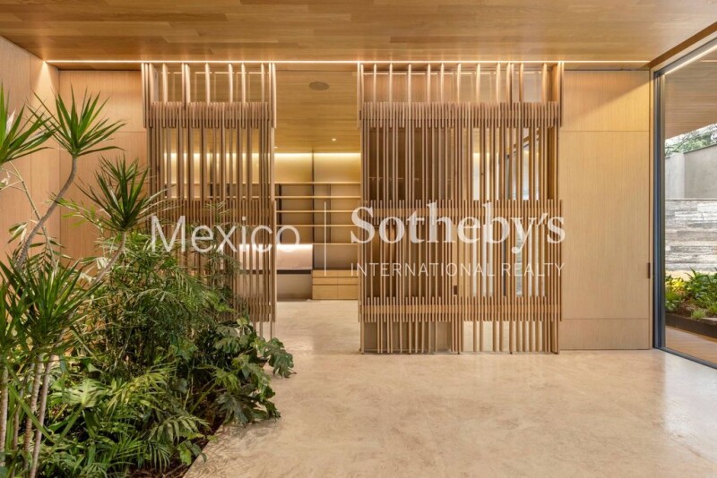 Inside the emblematic Rubén Darío 225 building in Polanco, we find this Pen Garden located in the Lord Byron building. Total 682 m2 divided into 424m2 of interiors and 258m2 of private garden and terraces. A house inside the safest building in Mexico, a jewel with the best amenities in this city, a dream pool, a two-story super gym with the best equipment, a juice bar, a youth room with a pool table, an equipped toy library full of colors and joy and an event room surrounded by elegance and good taste, a spa and bathrooms lined with corrugated Carrara marble of unique beauty, all with interior design by the architects Bernardi & Peschard. Lined with white oak wood with different textures and shapes, the interior of this beautiful apartment is covered, achieving a balance of elegance and warmth. The combination together with the marble of the floors and the complete environment make it organic and sober and of exceptional taste. We have a large social area together with a dining room separated by modules of this very special wood that hide drawers and different service stations according to the area. In the room, we have a bar with a sink and a small cellar. Behind a kitchen equipped with the best equipment, there is an interior patio that fills the space with light and harmony. A pantry with magical spaces to store what you want hidden inside these incredible, discreet and innovative modules in white oak. An imposing family room full of magic with sliding doors that give the space different views and environments that can be converted into a fourth bedroom with its full bathroom, and all these areas have direct access to the wonderful garden, terrace and deck through huge windows that open, giving an exquisite exterior life to this apartment. An imposing staircase due to its design and geometry in wood goes up to the upper floor giving sensations of well-being. Upstairs are three bedrooms and an intimate family room. All with access to a majestic terrace that achieves the perfect integration of the exterior to the interior. The master bedroom with a marble upholstered bathroom and a dream dressing room, is perfect for the couple that is distinguished by their good taste and style. Each bedroom has a bathroom and dressing room with its own personality. Sensational lifestyle to enjoy each space, visually a sober line full of elegance, harmony, warmth and sophistication. Parking, a warehouse, utility room and full laundry room.