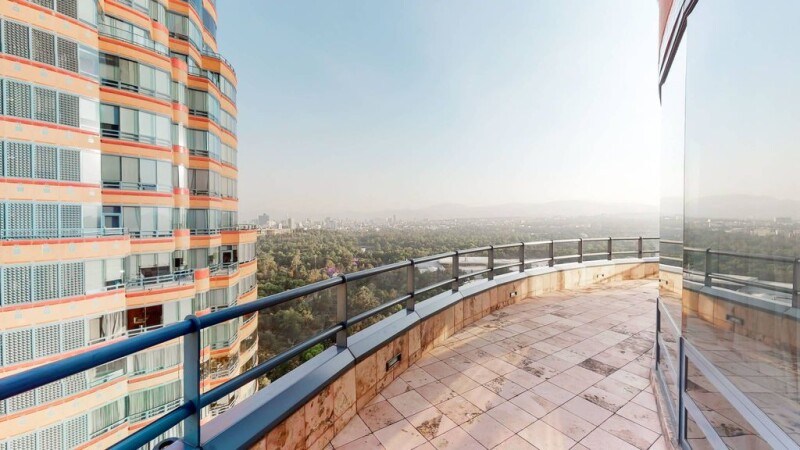 Residencial del Bosque, in Rubén Darío, with its two luxury towers, is located in one of the most prestigious areas of Polanco. Designed by the renowned architect César Pelli, the towers "Del Parque 1" and "Polanco" 2, are two twin towers each with 30 floors, have parking, a heliport for the service of the condominium owners and rooms for parties, meeting rooms , beauty salons, reception. The towers share a gym, a multipurpose room, indoor pool, bathrooms with steam sauna and terraces around the pool, as well as a tennis court and gardens. Within the exclusive development is this penthouse apartment, unique in its kind, on the 19th floor of Torre del Parque 1. With a total area of 937,147 m2, including its 4 terraces with 360º views of the city, Castillo and Bosque de Chapultepec . It has 4 spacious bedrooms with bathroom and dressing room, 1 service bathroom, 1 half bathroom, 2 living rooms, 2 kitchens, 1 dining room and dining room, family room, bar/canteen area, lobby. 4 parking spaces and 1 warehouse.
