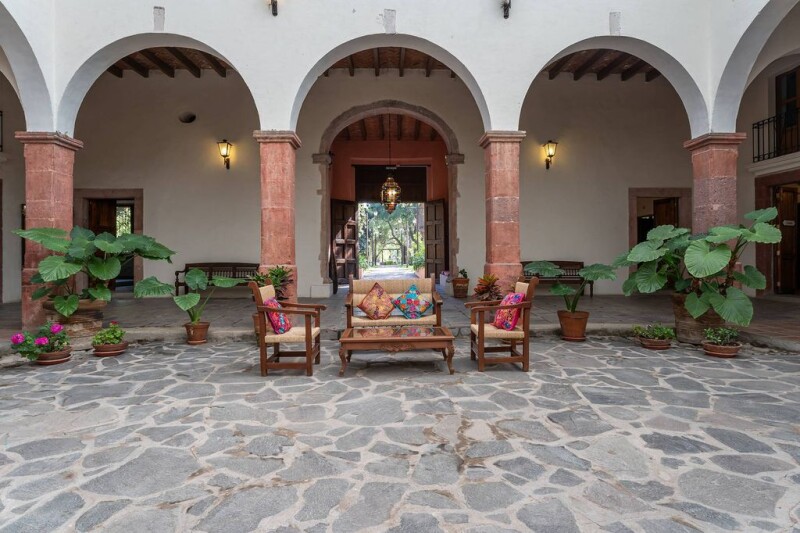 Hacienda de San Nicolas is a monumental and historic building dating back to the 16th and 18th centuries. It has been restored with 21st-century comforts while preserving its original rustic style and construction. Located on the ancient ”Ruta de la Plata”, now part of the Independence and Wine Routes, it is just 20 minutes from San Miguel de Allende and 40 minutes from the city of Querétaro. As a historical note, the property once served as a “presidio” during the colonial era, where caravans transporting minerals from the northern mines to what is now Mexico City would stop to rest, which explains the imposing wall and watchtowers still preserved today. This spectacular property, which has operated as a hotel, features various-sized meeting rooms and outdoor spaces, offering a magical experience due to its direct connection with the harmony and tranquility of nature. It is equipped with multifunctional rooms, a large outdoor plaza, a temazcal (traditional Mexican steam bath), a kitchen, 10 bathrooms, and ample parking space. The Hacienda has a total of 16 rooms, each with a private bathroom, located in two different areas, plus two rustic colonial-style cabins. The stunning gardens feature hundreds of fruit and regional trees, and the most beautiful touch is the large expanses of agapanthus flowers, whose white petals bloom once a year and stand out against the surrounding vegetation and the historic building. The central courtyard of the 18th-century Hacienda can accommodate between 250 and 300 people, offering great versatility due to its spaciousness, making it adaptable for all types of events. The potential and possibilities of this unmatched property are endless. The amenities it offers allow it to be operated as a hotel, restaurant, venue for all types of events and gatherings, retreat center, farm, and, taking advantage of the over 5 hectares of land, there is the possibility of a real estate development in line with the area's characteristics. The property is serviced by electricity through CFE and has its own water well with a concession title. Come and discover this majestic property to turn that investment dream into a reality.