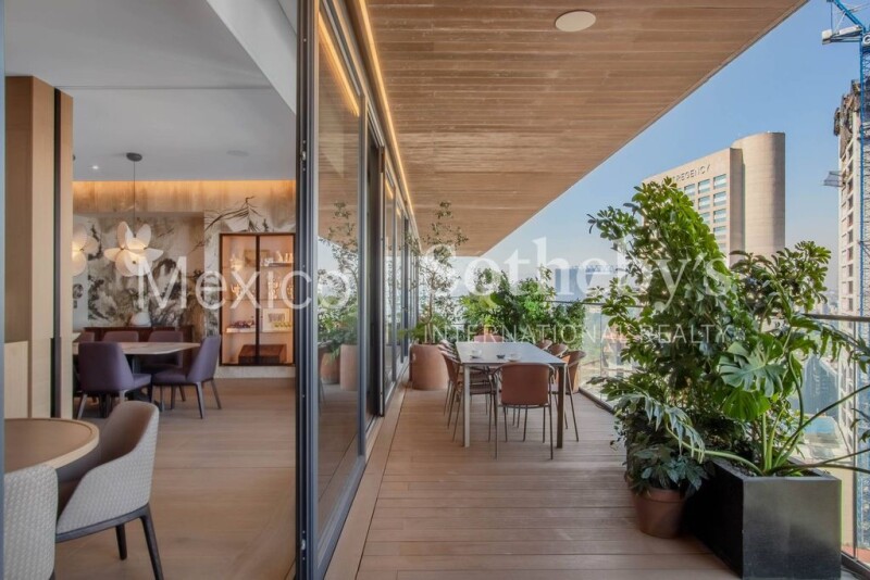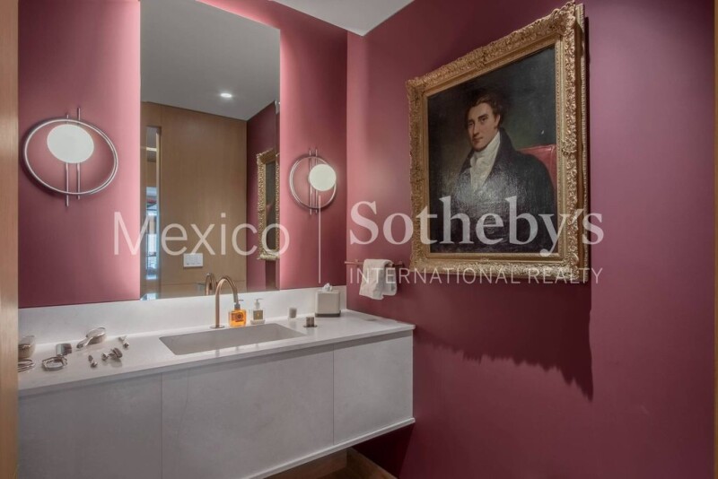 Welcome to this spectacular three-bedroom apartment in the exclusive residential development RD225, designed by the renowned architect Sordo Madaleno. This masterpiece of elegance and functionality is located on the 23rd floor, offering breathtaking views of the city through expansive floor-to-ceiling windows. The influx of abundant natural light and a surrounding terrace create a sense of spaciousness and connection with the surroundings. Upon entering the apartment, a vestibule hallway welcomes you, leading to a bright and modern living and dining area. The beautiful dividers, which separate but also unite these spaces, along with high-quality finishes such as architectural wood floors, add a touch of luxury to every corner. The living room, designed for maximum comfort, features elegant furniture and carefully selected decor, along with a high-end integrated lighting and sound system. The kitchen, equipped with state-of-the-art appliances and granite countertops, is a dream for cooking enthusiasts. With ample storage spaces and a central island, it provides a perfect environment for food preparation and socializing. The sleeping area, separated from the social area, includes a Family Room with access to the terrace and connects the three bedrooms, each designed to offer incredible spaces and comfortable rest. Each bedroom features a walk-in closet and a private bathroom with marble finishes, all enjoying stunning views of Chapultepec Forest Park and south of Mexico City. The master bedroom, with its own walk-in closet and direct access to the incredible terrace, offers a tranquil and luxurious retreat for residents. Additionally, the apartment features a separate laundry area and service quarters, a guest half-bathroom, as well as exclusive access to the first-class facilities of the residential development, which may include a gym, spa, pool, and green areas. In summary, this three-bedroom apartment in the RD225 residential development is an expression of luxury and sophistication, where exceptional design is combined with modern amenities to offer an exclusive and privileged lifestyle.