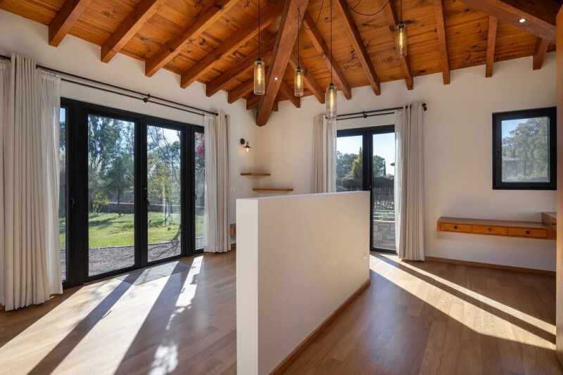 La Casa Cava is a stunning Tuscan-style home that blends seamlessly with its surroundings. It features a 65-foot-long pool and a jacuzzi, both with solar heating, set amidst a lush garden of over 600 square yards filled with vibrant flowers and a self-sufficient orchard with automatic irrigation. Upon entering the home, you are greeted by a welcoming entry with soft, indirect lighting and two guest closets. Moving forward, the space opens to a grand living area with a 16-foot-high ceiling. This includes a cozy living room with a fireplace, a dining area, and a kitchen equipped with a semi-professional, 13-foot-long island. Adjacent to the kitchen is a large pantry, and the whole area offers stunning views of the garden, lavender fields, olive trees, and vineyards. Upstairs, the master bedroom boasts a southwest-facing balcony, perfect for watching the sunsets. It also features a spacious dressing room and a bathroom with a breathtaking view that can be enjoyed from the bathtub, making it feel like a living painting. On the ground floor, you will a spacious office, two guest bedrooms, each with its own en-suite bathroom. There is also a TV room with wood paneling that adds a European touch, a service area, and multiple storage rooms. The basement houses an impressive wine cellar, including a circular room that is naturally lit from the third floor, maintaining the perfect temperature for your wines. Outside, there is a terrace with a fireplace and an excellent pizza oven, as well as a pergola adjacent to the vineyard—an ideal spot for enjoying breakfast while enjoying the morning light. The property, as part of the desirable San Lucas Viñedos Development offers the opportunity to enjoy your own wine, olive oil, and lavender, providing a delightful taste of the land’s bounty.