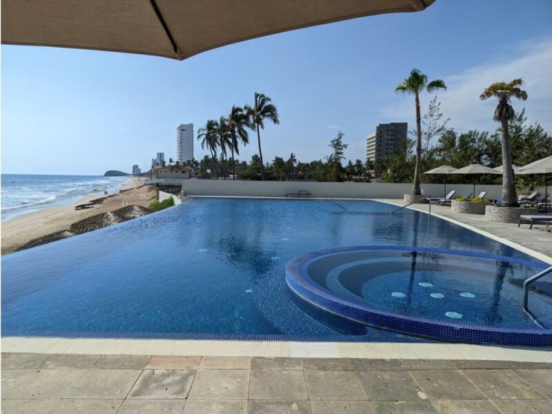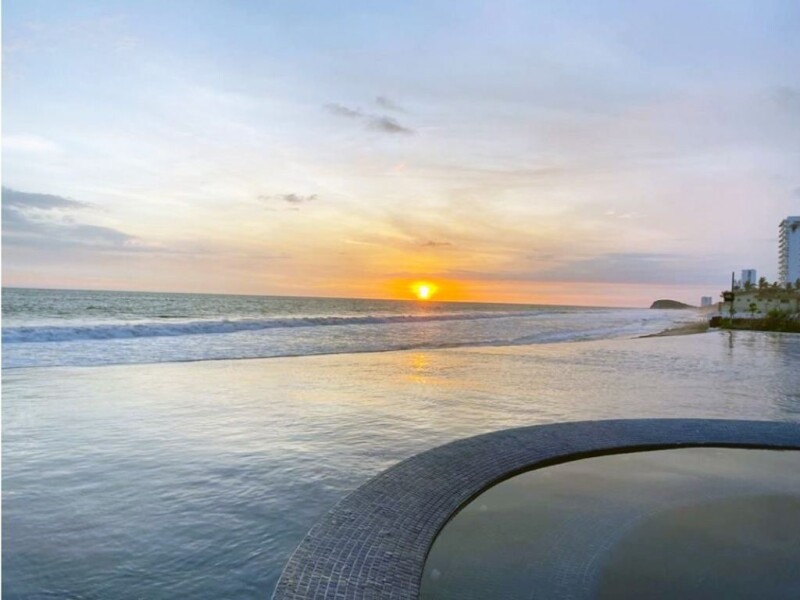 The tower is located on the Cerritos Beach in Mazatlan, it has a large beach area, controlled access, infinity pool, jacuzzi, lounge chairs, palapas, private access to the beach, business center, paddle court, business center, movie theater, sports bar, gym and 24 hour security. This condominium has been designed with contemporary finishes, granite in the kitchen and luxurious details. Ocean view, 3 bedrooms, 2 full bathrooms, large terrace with ocean view, air conditioning, dining room, full kitchen with granite countertops, dressing room and service room. For more information, please call 669-234-5925.