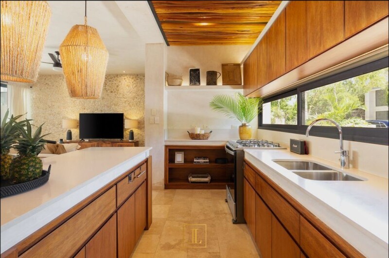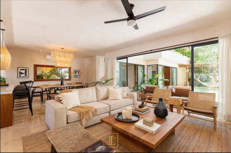 BEAUTIFUL AND MODERN TURNKEY HOME IN TULUM Discover residential elegance in the heart of Tulum, within the prestigious Aldea Zamá: La Privada, a luxury community that redefines high-end living with 98 exclusive lots for single-family homes. Surrounded by the lush tropical landscape of Tulum, La Privada is a private sanctuary designed for those seeking privacy and serenity. With more than 2 hectares dedicated to open spaces, green areas and pedestrian paths, La Privada is committed to environmental sustainability and conscious luxury, harmoniously integrating with the surrounding nature. This magnificent 348 m² residence extends over three levels and offers: ◆ 4 spacious bedrooms, including a master bedroom with dressing room and all of them with private access to a balcony or terrace. ◆ 4 full bathrooms with contemporary design in each room and 1 guest bathroom. ◆ 2 parking spaces for your comfort and security. ◆ Floor-to-ceiling windows invite in natural light and frame stunning views. ◆ An open American style kitchen, fully equipped. ◆ Walls finished in Chukum, a traditional technique that provides beauty and freshness. ◆ Fine carpentry that reflects quality and attention to detail. ◆ Aluminum frames with a walnut wood finish that add a touch of warmth. ◆ Veracruz marble floors that offer a touch of luxury under your feet. ◆ Bathroom accessories from the prestigious Helvex brand. ◆ Complete service area to facilitate home maintenance. ◆ Equipped laundry room. ◆ A rooftop with a hardwood pergola and hammock, ideal for enjoying the perfect climate of Tulum. ◆ Deck and organic pool to relax in the privacy of your home. ◆ 24-hour security for your peace of mind. ◆ Community amenities that include paddle tennis court, multipurpose room and swimming pool. Delivered fully EQUIPPED and FURNISHED, with the highest quality materials and a modern, elegant and sophisticated style, this residence is ready to be inhabited. A unique opportunity to acquire a property either as a holiday residence or as an investment in one of the most coveted tourist destinations in the world. Contact us now for more information or to schedule a personalized visit. ► Send us a message at: +52 55 67632125. - Carla Martínez Serrano.