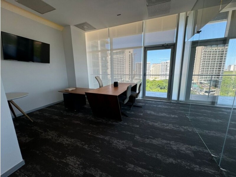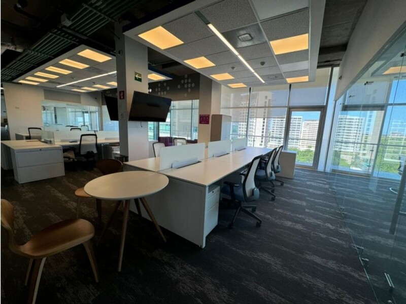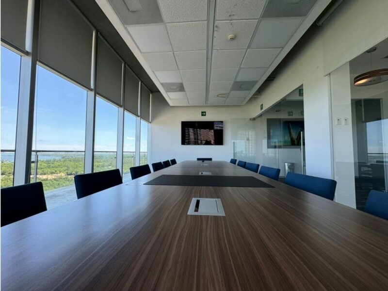 Office for rent for a renowned corporation on Bonampak Avenue. The entire office has ocean views. Top-quality furniture, luxury equipment, and excellent condition. Private work areas, meeting rooms, and internal and external bathrooms. A wine cellar, luxurious reception, and security. Elevators. Kitchen for employees. Price: 22 USD per square meter plus maintenance, plus VAT. 2 months' deposit, and 1 month's rent. Telephone: 9981706658 with Roxana Sanchez.