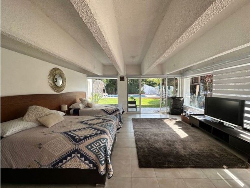 Beautiful Mediterranean style house north of Cuernavaca Beautiful Mediterranean style house north of Cuernavaca with pool located in the private Lomas de Tzompantle, Cuernavaca, Priced at $8,800,000. A house designed to spend incredible afternoons with your family or ideal for investing All the spaces in this property are very spacious, plus it is located in the north of Cuernavaca (cold zone) This property is currently rented as RBNB every week making it a very good option to invest. The house has: 5 bedrooms, with space for a TV room and garden view. 2 full bathrooms. Living room. Dining room. Full kitchen equipped with breakfast bar. Beverage bar with luxury finishes. Maid's room with bathroom. Laundry room. Stationary gas. Roof garden. Cistern. Stationary gas 450m2 of construction. 578m2 of land. House amenities: Beautiful garden Equipped pool Trees that give shade and freshness to the property Parking for 4 cars Terrace with garden views Tree house Subdivision with 24-hour surveillance The property has a third level where we can find the roof garden ideal for spending incredible afternoons Schedule your appointment with Barajas Bienes Raíces any day of the week We manage and process your credit completely free of charge.