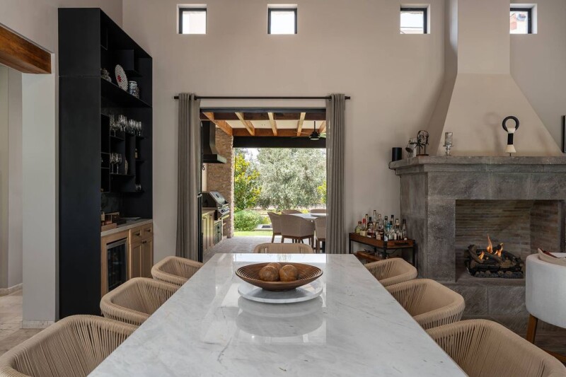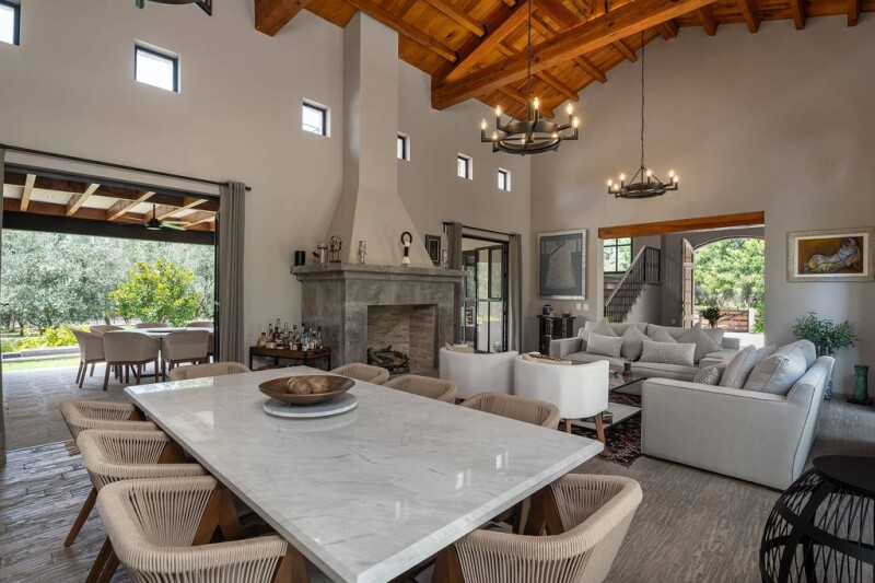 Casa del Vino, nestled within the stunning Viñedos Santísima Trinidad, offers a serene escape just 20 minutes from the historic charm of downtown San Miguel de Allende. This exclusive property spans two acres of landscaped grounds, surrounded by mature trees, olive groves, and vineyards, creating a peaceful haven for relaxation and entertainment. The community boasts over 80 hectares of breathtaking scenery, including vineyards, lavender fields, olive trees, and a picturesque lake. Residents enjoy access to a clubhouse, gourmet restaurant, paddle tennis court, polo field, and horse stables. The home’s prime location is close to the community’s hotel, restaurant, and clubroom. Set back from the road, the elegant estate includes a two-car enclosed garage and an architectural design that blends sophistication with comfort. Inside, the spacious open floor plan seamlessly connects the living room, dining area, and gourmet kitchen, with the added convenience of a catering kitchen for hosting special events. Nearly every space in Casa del Vino opens to patios and gardens, emphasizing indoor-outdoor living. A covered terrace, equipped with a kitchen and large gas grill, serves as the centerpiece for outdoor entertainment, offering picturesque views of the surrounding landscape. The home features four generously sized bedrooms, each filled with natural light, and offers private en suite bathrooms with luxurious finishes. The house also has a solar system, which helps minimize the cost of the electricity bill. Fully furnished and ready for immediate enjoyment, Casa del Vino is a turnkey retreat designed to create lasting memories with family and friends. This exceptional property is the ultimate embodiment of the wine country lifestyle. Schedule your private tour today to experience its timeless beauty and charm.