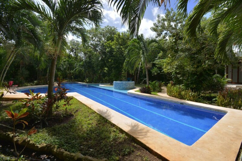 Welcome to Villa Alma de Selva, a high-profile residence that redefines exclusivity in the Riviera Maya. This elegantly designed villa spans 7,858 sq ft (730 m²) on a generous lot of 9,648 sq ft (896.46 m²), offering a luxurious lifestyle perfectly in tune with nature. Spanning three levels, the villa boasts 5 bedrooms and 4 bathrooms, each thoughtfully designed to provide comfort and sophistication. The ground floor serves as the social heart of the residence, featuring a spacious living and dining area with Carrara marble floors, accentuated by a tasteful decorative fountain beneath the staircase, creating a welcoming and distinctive atmosphere. The contemporary kitchen design blends warm parota wood with white finishes and is equipped with high-end appliances, including a Maytag oven and an integrated General Electric coffee maker, ideal for culinary enthusiasts. Adjacent to it, a spacious TV room provides the perfect setting for family gatherings. The property offers four strategic access points: a main entrance with motor lobby, a garage for three vehicles, a service entrance, and an additional entry from the garden, providing versatility and privacy. On the second floor, the master bedroom impresses with a walk-in closet crafted from high-quality tzalam and parota wood, a private bathroom with double shower and steam room, and a private terrace with views of the pool. The additional bedrooms, also equipped with high-quality wood closets, offer views of lush green areas, creating a serene and tranquil atmosphere. The third level features a private gym with rubber flooring and an impressive panoramic terrace with jacuzzi, perfect for unwinding and enjoying the natural surroundings. The entire villa is centrally air-conditioned, ensuring freshness in every corner, no matter the season. Villa Alma de Selva is more than a residence: it’s an oasis where luxury and nature converge, crafted for those who seek a unique lifestyle in the Riviera Maya. HOA 465 USD FOR THE 2 LOTS Predial 788 USD FOR THE 2 LOTS.