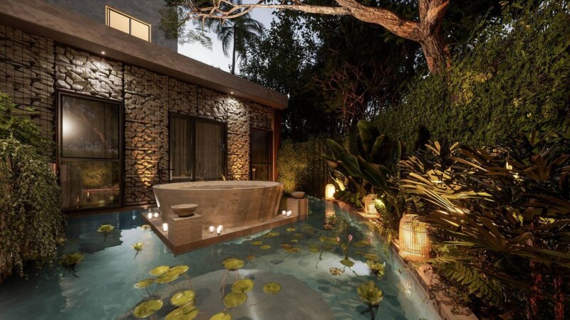 In Cardinal Tulum, we create a place where everybody can share the same ideals by being part of a Slow Living community — people who see life more significantly. Located in Selva Zama, this new urban area integrates innovative architecture and sustainable design, creating a lifestyle within an active community genuinely concerned with nature. Through Cardinal Tulum, you will live a comprehensive well-being experience far from sensory hyper-stimulation, greatly enhancing your quality of life. GROUND FLOOR • 1 master bedroom • 3 regular room • 4.5 bathrooms • Storage/Linen closet • Private patio on ground floor • Living room • 1 parking space • Outdoor bathtub • Fully equipped kitchen • Laundry room.