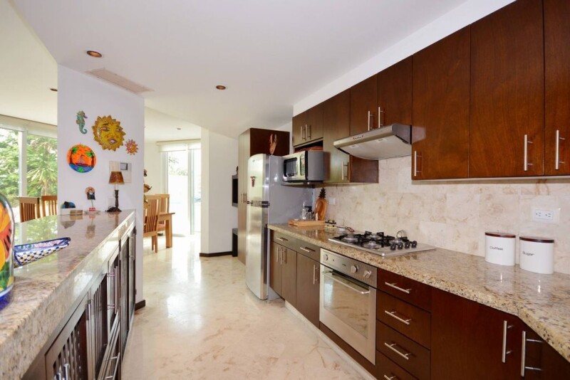 This charming three-level apartment perfectly balances comfort, privacy, and a prime location. With 2,030 sq. ft. (188.68 m2) of construction and two spacious terraces, of 590 sq. ft. and 746 sq. ft. (54.80 m² y 69.33 m²), it offers a lifestyle of tranquility and connection with nature. Located in an exclusive condominium with only 17 units, surrounded by lush tropical vegetation, this home feels like a peaceful oasis. Upon entering, an elegant marble hallway leads you to a warm and inviting space. The ground floor features a bright living and dining area, a fully equipped kitchen, a full bathroom, and a large terrace with a jacuzzi—perfect for unwinding and enjoying the warm climate. On the second level, you'll find two comfortable bedrooms and two bathrooms, with the master suite boasting a walk-in closet. Plus, the soundproof windows ensure a restful sleep. The third level includes a laundry area and a spacious rooftop that, with a touch of creativity, could become your private paradise. An added bonus: the apartment comes with a designated covered parking space. This is truly a home with great value, security, and the charm of the Riviera Maya. Land tax $5,500.00 aprox pesos per year, and if it is paid on December, it has 20% off Maintenance fee $6,300.00 pesos per month.