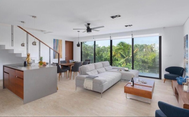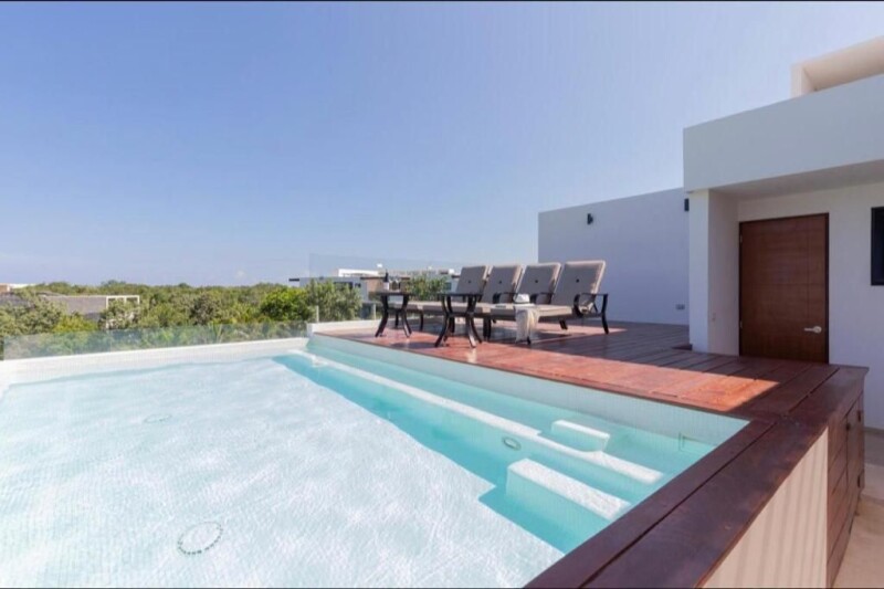 PANORAMIC TULUM Spectacular development, nature and architecture of 360, formed by 84 units of which 4 are penthouse with 3 bedrooms, which are the most exclusive units of the building since they have beautiful views on its two level, beautiful and spacious terraces, BBQ area and private pool THREE BEDROOM PENTHOUSE DIMENSION: 281.79 sq mts (3,033.16 sq ft) Fully furnished 3 rooms 3 and 1/2 bathrooms Master bath with tub Laundry room Two levels Rooftop with private pool 2 panoramic terraces BBQ area PANORAMIC INCLUDES: Lobby with artificial cenote Tropical garden Concierge Panoramic elevator 24 hour security Restaurant Yoga Loft Gym Roof top with 360 degree panoramic pool Panoramic terrace Pub.