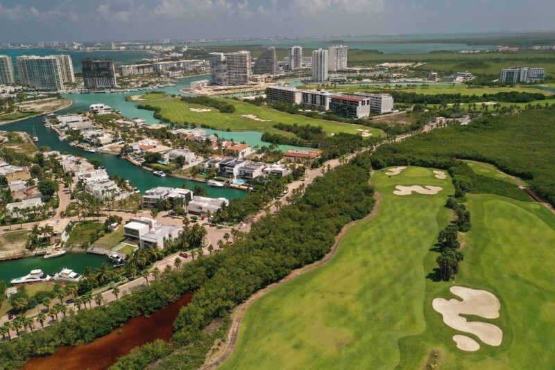 Beautiful house in the most exclusive residential of Cancun, with 5,603.05ft² of land and 7,593.72ft² of construction you can enjoy the incredible view of the canals of Puerto Cancun. Distributed on 2 levels and a basement area we will find 4 bedrooms plus a maid's bedroom and laundry room, 3 bedrooms each with full bathroom upstairs, the master with walk-in closet, a bathroom with an exquisite European design, double sinks on an onyx base that is illuminated and shower with tub. A very spacious TV area that connects to a huge terrace which has the best view of the canal. The first floor is a place full of light with fine finishes, Italian marble floors and double glazed anticyclonic windows with a large foyer, a European style kitchen, living room, dining room with access to a covered outdoor terrace and garden. This social area connects to the pool that adjoins the navigation channel and the private dock with capacity to park a 65" yacht. Going down to the basement there is a guest bedroom with full bathroom, and a huge living room area with kitchenette, on one side you can access directly to the pool area and on the other side is the covered parking for 4 cars and another space in front of the house. The European design of the house allows you to appreciate 4 different designs of facades, and has intelligent system giving it a unique touch. - Unfurnished.