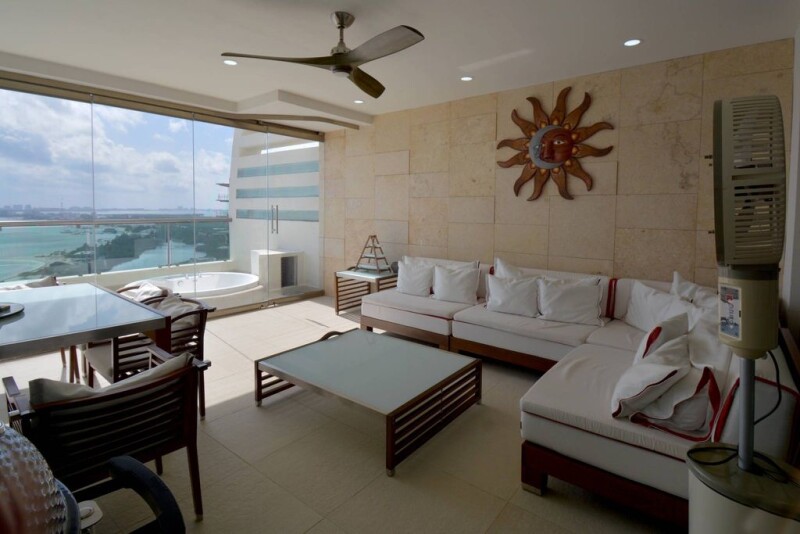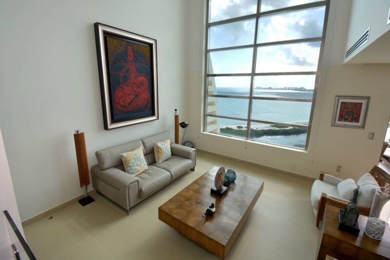 Discover the ultimate expression of luxury and exclusivity in this spectacular penthouse located in Novo Cancún, the most prestigious residential community in Puerto Cancún. Designed for those seeking a sophisticated lifestyle, this home offers unparalleled views of the Caribbean Sea, direct access to a private beach, and world-class amenities. This two-level penthouse does not include furniture or art, boasts a total area of 428.46 m² (4611.9 sq ft) and three parking spaces. Its avant-garde design maximizes ocean views and natural light, featuring luxurious finishes in porcelain, marble, granite, and wood. The kitchen is equipped with stainless steel appliances, combining functionality and elegance. On the lower level, direct elevator access leads to a spacious double-height living room and dining area with floor-to-ceiling windows offering breathtaking panoramas. The kitchen, with a granite countertop, is complemented by a service area and a maid's room with a full bathroom. This level also includes a family lounge with a play area and a covered terrace. The private solarium terrace features a jacuzzi, a sunbathing area, and a social space with a barbecue. Additionally, this level hosts a luxurious bedroom with a walk-in closet and en-suite bathroom. On the upper level, the master bedroom offers a direct ocean view, a spacious walk-in closet, a bathroom with a bathtub and shower, and a covered terrace perfect for enjoying the sea breeze. The third and fourth bedrooms also feature walk-in closets and en-suite bathrooms. For added convenience, this level includes a TV lounge and a dedicated office space. Novo Cancún's exclusive amenities include a private beach club, swimming pools, a gym, a private marina with direct sea access, an 18-hole golf course, and an exclusive restaurant at the SLS hotel. Additionally, it offers concierge services, a palapa, and a snack bar, ensuring an unparalleled lifestyle. Set in a privileged environment that blends a nautical, sports, and family-oriented lifestyle, this penthouse represents the perfect opportunity to live surrounded by luxury and tranquility in paradise.