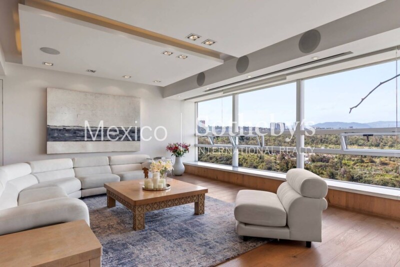 Residencial Veramonte, recognized for its unbeatable location in La Loma, Santa Fe connected with several fast access roads and surrounded by commercial, educational, cultural and financial centers as well as first-class hospitals and restaurants, where you can enjoy magnificent views of both the city and the mountains and most importantly where you can enjoy endless first-class amenities and with strict surveillance 24 hours. Interior design by the office Sobrado y Ugalde, who achieved a design with luxury finishes in Italian marble, natural wood floors and "white crystal" with colors that reflect a lot of light, lighting points from floor to ceiling, and sophisticated sound systems, in addition to that thanks to the orientation they achieved spacious and illuminated spaces in both social and private areas. The distribution will allow you to enjoy three large bedrooms, the master with dressing room and full bathroom the others with closet and bathroom each, a fully equipped kitchen with subZero and Teka brand appliances, a large room, T.V room, laundry area and service. Also enjoy the extraordinary luxury amenities offered by the condominium such as: an indoor pool, cafeteria, courts, adult room, games room, teenage lounge, spa, gym, playroom, event room, cinema, meeting room and library. Thanks to its quality finishes and magnificent state of conservation guarantee a quiet and proud life for you and your family .