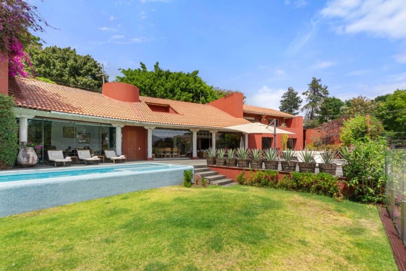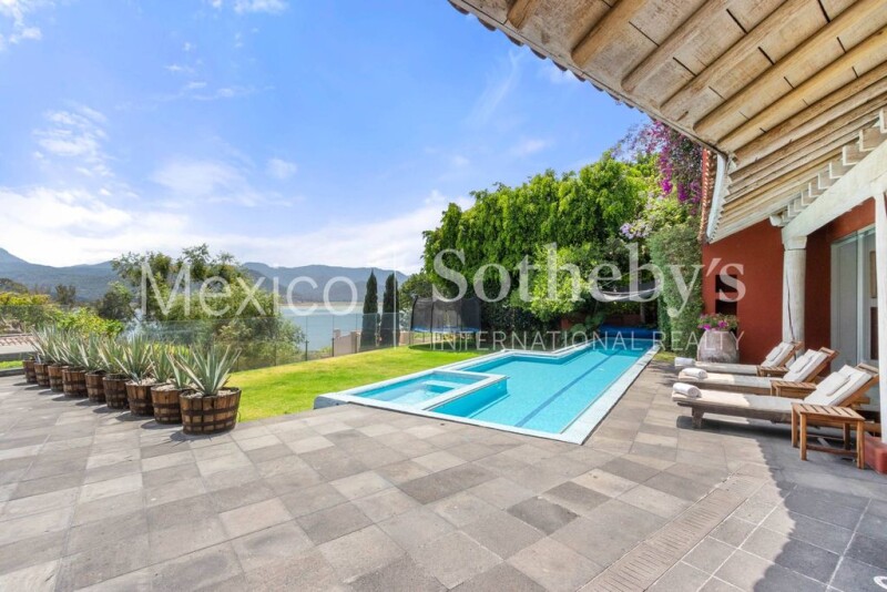 Nestled amidst the stunning landscape of Valle de Bravo, perched on the enchanting La Peña, lies a remarkable house that epitomizes luxury living in this picturesque region. With breathtaking panoramic views of the surrounding mountains, lush greenery, and the sparkling waters of the lake, this residence offers an unparalleled experience of natural beauty. As you step onto the expansive 1,400 square meters of land, you’re greeted by meticulously landscaped gardens that seamlessly blend with the natural terrain. The gentle breeze carries the scent of pine trees and wildflowers, creating a tranquil ambiance that soothes the soul. The warmth of the sun embraces you, reminding you of the perfect weather that Valle de Bravo is known for, a delightful contrast to the cooler temperatures found in other areas of the town. The house itself is a masterpiece of architectural elegance, boasting 500 square meters of thoughtfully designed living space. Four spacious bedrooms, each with its own luxurious en-suite bathroom, offer comfort and privacy for residents and guests alike. The interiors are adorned with high-end finishes and tasteful decor, creating an atmosphere of refined sophistication. Stepping outside, you’re greeted by a paradise of leisure and relaxation. A sprawling terrace provides the ideal setting for al fresco dining and entertaining, while the lush garden invites you to unwind amidst nature’s splendor. The centerpiece of the outdoor oasis is the inviting pool, complete with a rejuvenating jacuzzi, offering a refreshing escape on warm summer days. Convenient staff quarters ensure that every need is attended to with utmost care and attention to detail, allowing residents to immerse themselves in the Valle de Bravo lifestyle fully. Whether you’re lounging by the pool, savoring the views from the terrace, or exploring the enchanting surroundings, this house offers the perfect blend of luxury, comfort, and natural beauty for those seeking an idyllic retreat in Valle de Bravo’s La Peña.