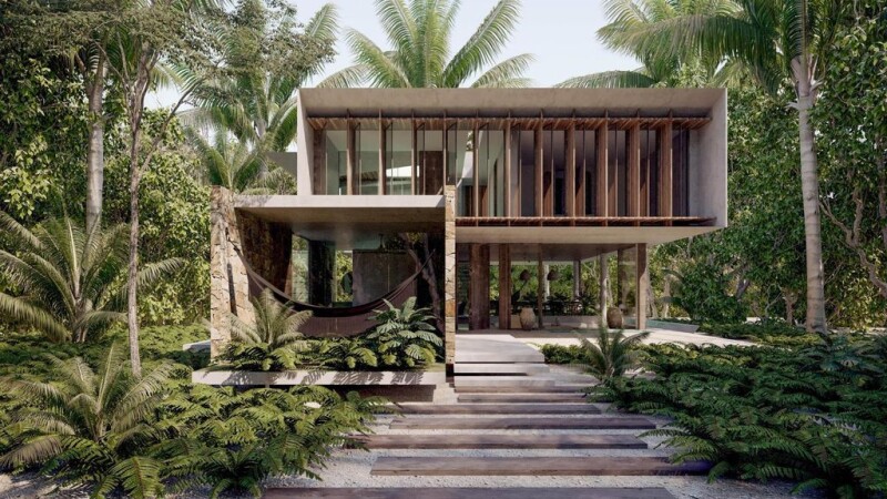 Xeelenja means sea breeze. The currents of Caribbean air that caress the waves of the sea and enter the jungle to enter your home through a window. They were the inspiration of the architect who designed this luxury villa.~~Water and air are the protagonists in this design; On the one hand, reflecting pools and pools delimit the property, functioning as a rebound so that the sun's rays do not affect the house directly.~~At the same time, the cross air currents guarantee the decrease in the use of energy resources to maintain fresh and pleasant environments, being friendly to the environment.~~The trees, which we tried to care for and maintain in the land area, also play an important role, because their shade contributes to the optimization of energy resources, helping to avoid the incidence of direct solar rays and dampen sound and heat radiation. It is a house where each of the areas is carefully designed to provide comfort to those who live there.~~Villa of 413 square meters and 966 m2 of land. It is distributed in living room, kitchen, laundry room, four bedrooms, three bathrooms and a toilet. All exterior with lots of light. Rooftop pool. Garage for 4 cars.~~The materiality of the house is considered 100% with materials from the region, such as Mayan stone, chukum, fine and precious woods from the area, with the aim of reducing the polluting footprint in the construction process. construction.~~Xeelenja was designed in clean and minimalist lines. Its shape is a product of the functionality of the spaces and it is intended that each face of the house has an opening to the outside.~~Reference V2496-ZT~.