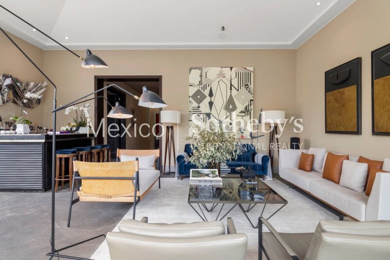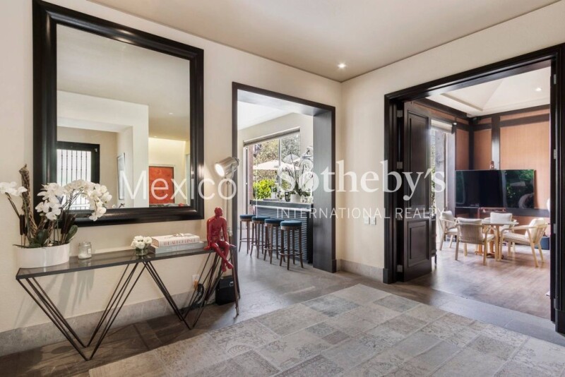 Spectacular house of the famous architect Carlos Herrera, inspired by the Hotel Las Ventanas al Paraiso in Rosewood, Cabo San Lucas. Ladera 20, "La Retama" is one of the most exclusive subdivisions in Lomas de Bezares, with only 40 houses within the private subdivision. The house is in the best location in the residential with a panoramic view of the forest and the ravine. Built on a land of one thousand meters. Entering the house you can hear the sound of water coming from a fountain that gives access to the main entrance, a hall takes you to the living room with a bar, this whole area opens onto a very nice terrace, on the other side an incredible library that also opens to the terrace which makes each space unique, separate dining room, breakfast area and kitchen. On the first level are the three bedrooms, each with walk-in closet and bathroom, the possibility of making a fourth bedroom. Gym, Family and access to the incredible flat Garden with a terrace for unforgettable outdoor meals. Laundry, two utility rooms and a room for drivers. On the lower level, the house is ready to increase its construction by 450 meters, with a double-height area to make a basketball court, an indoor pool, a spa, a cinema or whatever is required. The “La Retama” subdivision has top-level security and has amenities such as a tennis court, paddle tennis, covered pool, garden with children's games, squash and an event room. All without having to leave home.