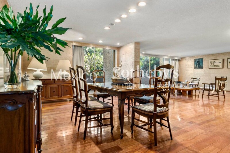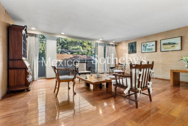 Located in one of the most privileged areas of Av. de las Palmas being just one block from Paseo de la Reforma. Residence from the 60s, distinguished by its conservative style, solid structure, and excellent layout. The distribution is as follows: very spacious living and dining room, office and TV room, kitchen and dining room with large windows that open onto the garden where you can admire a beautiful Jacaranda. With four bedrooms, each with its bathroom, the master bedroom stands out for its spaciousness. In addition, it has a separate space in the back where you can add more bedrooms, an office area, or even a game room. One of the characteristics of this property is its timelessness and functionality which can be adapted to any style.