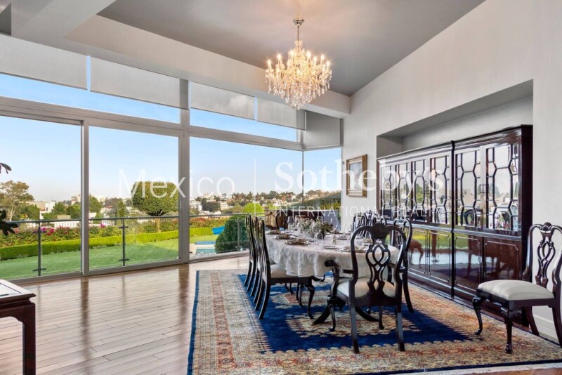 This beautiful contemporary house in Bosque de las Lomas has a great layout, where all areas of daily life are located on the first floor, floor-to-ceiling windows frame the common areas, allowing in plenty of natural light and They offer beautiful views of the surrounding area. The 3 bedrooms with walk-in closets have access to a large garden and pool. On the lower floor, there is a games room, with a wine cellar, a game table, and a television area that also opens to the garden. Bosque de las Lomas is a neighborhood known for its beautiful forested hills and luxury homes, making it a desirable location for those seeking a life of luxury and privacy.