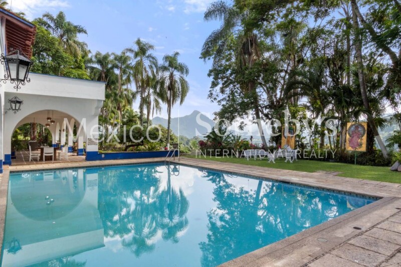 A destination in itself, La Casa Azul is a historic estate located in the picturesque town of Fortín de las Flores, known as the "City of Flowers" for its temperate climate. Just a few minutes from Córdoba, Veracruz (a magical town in Mexico), this 3.3-hectare property offers stunning views of the Metlac Gorge, a protected ecological reserve, and the majestic Pico de Orizaba, the highest volcano in Mexico. La Casa Azul stands out not only for its natural beauty but also for the activities it offers, including hiking, butterfly and bird watching, fruit picking from its diverse fruit trees, playing pickleball on its large court, enjoying its beautiful swimming pool, and spending time in its greenhouse and numerous gardens. Built in the 19th century by the Echegaray family, who contributed to the development of Mexico during their time, the estate combines colonial influences with traditional details. It has been home to prominent families and has become a symbol of local history. The main house features an impressive double-height dining room reaching 8 meters, a living room with a fireplace, a breakfast nook, a bar, and a wine cellar in the basement. The interior of the house showcases breathtaking views of the reserve, while the porches invite guests to enjoy the outdoor spaces. The kitchen is bright and welcoming. The seven bedrooms each have a private bathroom, closet, and elegant ceramic and Talavera details. Three of the bedrooms feature spacious terraces, and all offer spectacular views. The property includes two independent bungalows, each with a kitchenette, dining area, and living room. The first bungalow has two bedrooms, a full bathroom, a study, and a large terrace, with additional space that can be converted into two extra bedrooms and a bathroom. The second bungalow has one bedroom. Additionally, the property includes a caretaker's house and a large storage room. La Casa Azul is ideal for events, featuring ample outdoor spaces, independent bathrooms near the plazas, and a covered area that can be adapted as a kitchen. The property provides enough space for parking vehicles needed for activities and has a special area for ceremonies. It is perfect for either a boutique hotel or a large family looking to enjoy this beautiful location. The nearest airport is just an hour away and offers daily flights from Houston and Dallas, making the property an attractive destination for international tourism.