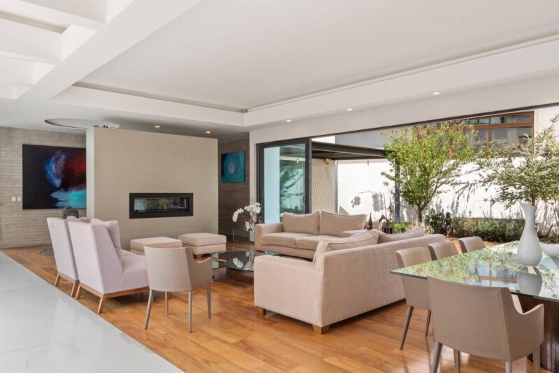 Magnificent minimalist style residence located in an exclusive condominium Bosque de las Palmas very quiet and safe with easy access to Interlomas. Project of 670 m2 modern, sustainable and of great design using first level materials, thus achieving a comfortable, practical and functional house capable of housing a large family thanks to its independent areas and interesting corners that allow the coexistence of different groups, but each of them with its own individuality. It has everything you need on one level, 4 bedrooms the main one with dressing room and private bathroom as well as a nice terrace, the others with closet and private bathroom, games room and tv that connect with another of the terrace, office, dining room, equipped kitchen and an interior patio with grill ideal for social and family events, all areas have a wonderful view towards the garden. Are you a wine lover? Close to you and with easy access to your own cava with an innovative design in a space where you can enjoy and relax either with friends or family. The subdivision has green areas, soccer field and running track as well as a dog park. For all the above this property becomes an excellent option to become your ideal home.