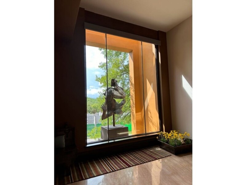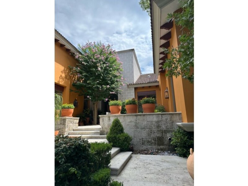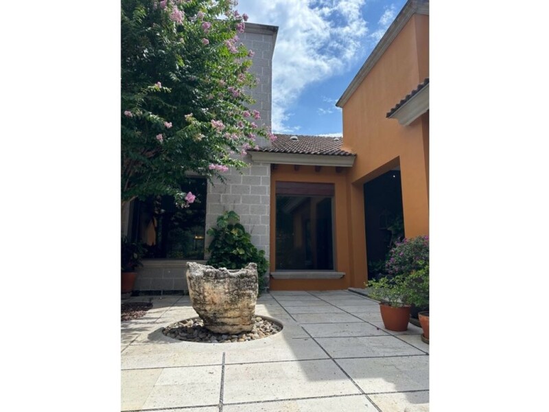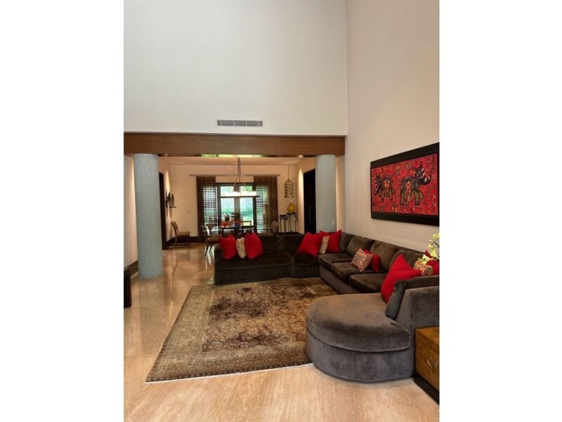 LUXURIOUS RESIDENCE EQUIPPED, WITH LUXURIOUS FINISHES AND SPECTACULAR VIEWS. Unique design arch. JJCamelo Schuarz The house has heights of 3 meters and magnificent distribution. Ground Floor.- Large hall, library, double living room with bar, beautiful dining room with indirect lighting and views of the garden. Family room, kitchen with island and breakfast bar for 8 people, double pantry and laundry room. Double outdoor terrace with fireplace and grill. Equipped movie theater, gym, office, 2 bedrooms with bathroom, dressing room and walking closet and elevator. Second Floor.- 2 very large bedrooms with walking closet and terrace.